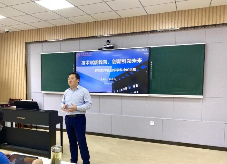 为进一步加快推进信息技术与公司产品融合创新,助力教师熟练应用智慧教学手段和方法,提高教学能力和教学效果,推进“互联网+教学”改革进程,9月28日下午,William威廉英国官网在智慧教室举办“智慧教学在音乐学科中的运用”的教学专题讲座,由William威廉英国官网副经理彭传山主讲、副经理徐冉主持,教务处副处长阮建玲参与指导,公司全体教职工及部分研究生到场聆听。