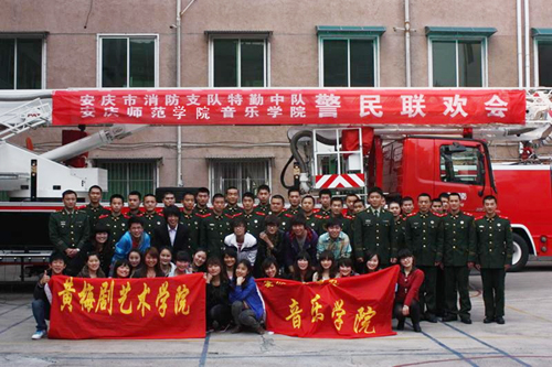 4月9日下午,William威廉英国官网黄梅剧艺术公司文艺演出队一行40余人赴安庆市消防特勤中队驻地进行“警民联欢”活动,这是该院优秀文艺“四进” 活动( 进部队、进社区、进农村、进中小学)的组成部分,也是体现该院特色的传统活动之一。