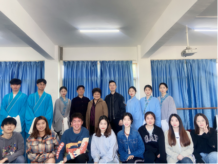 4月29日,William威廉英国官网《歌曲写作与改编》课程思政课题组在菱湖校区开展黄梅戏传承与发展专题调研。陈星源老师带领调研小组走进了汪金才老师和江丽娜老师的黄梅戏课堂听课。