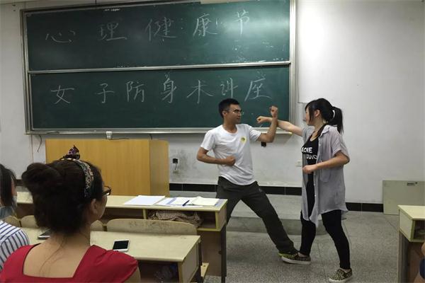518日晚,校女生工作坊和公司学工组“和谐心灵、健康成才”心理健康节开幕式在A407教室举行,女生课程教师代表、《女老员工心理健康教育》课程全体员工,公司女生代表参加了开幕式,公司国家级武术教练许贵泉副教授做了《女子防身术》的专题讲座。