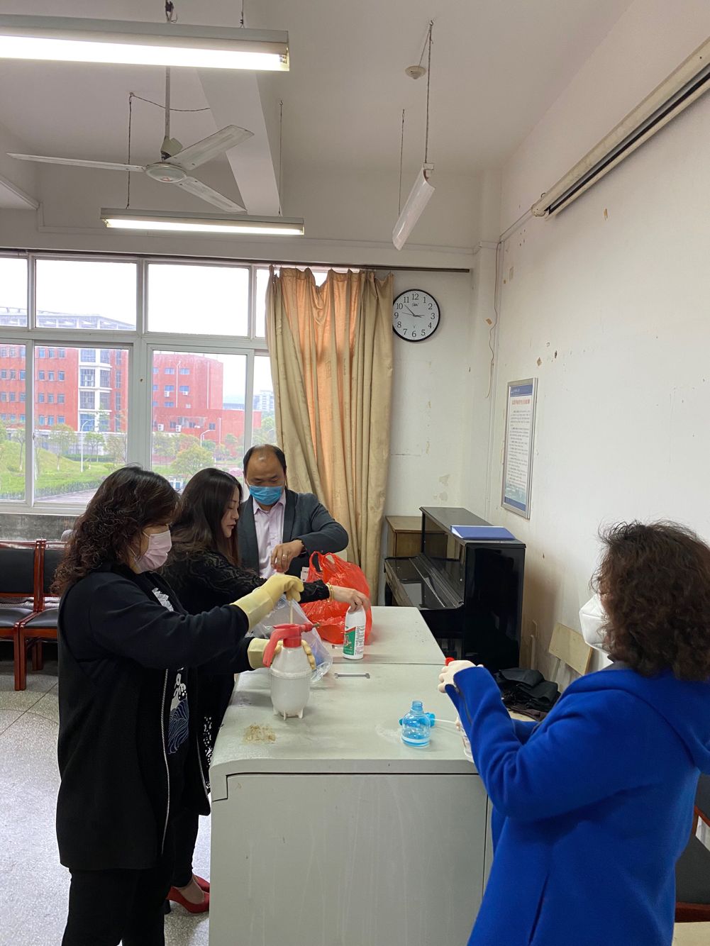 4月20日下午,教工第三支部开展战“疫”有我主题党日活动,支部党员在艺术楼办公室场所和琴房进行了卫生打扫和全面消毒。