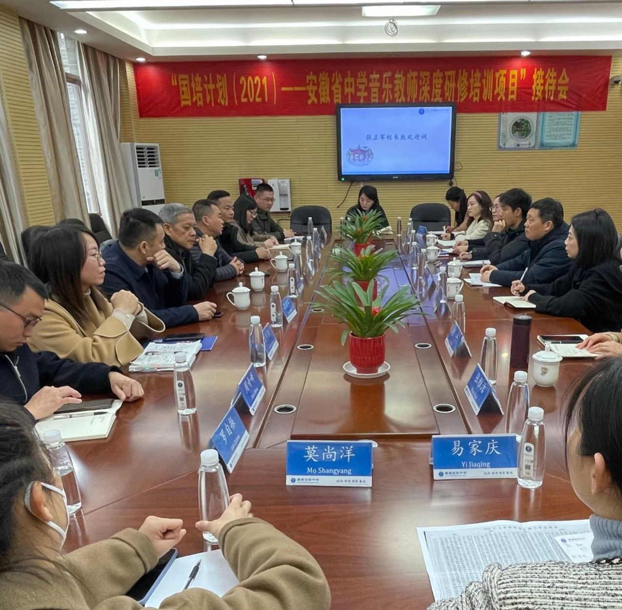 3月19日,由公司承办的“国培计划(2021)”安徽省体育音乐美术等薄弱学科教师深度研修(中小学音乐)项目第三年度跟岗研修分别在湖南师范大学附属小学、长沙市周南实验中学正式开班。湖南师范大学美育发展与研究中心主任吴修林教授与胡碧鱼博士出席会议。跟岗研修公司领导、承训单位领导、项目组成员、实践指导老师、全体学员参加开班仪式。