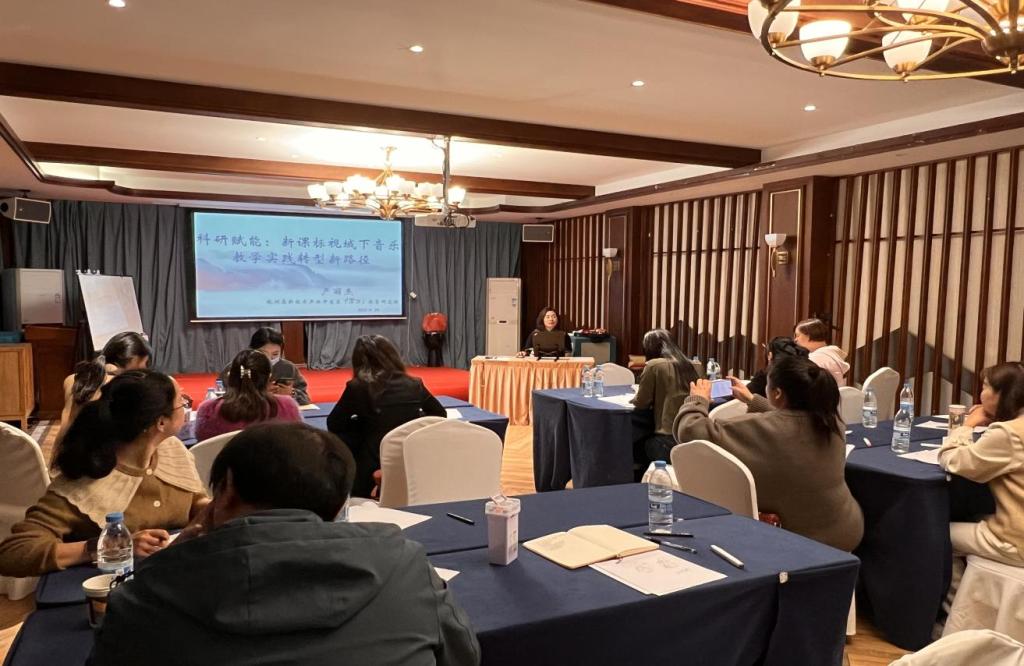 为提升音乐教师科研能力和素养,促进教学实践与教学研究相结合,2022年11月24日,在杭州跟岗的安徽省国培计划2021(中小学音乐)培训项目邀请到了杭州市滨江区教育研究院严丽杰老师给国培学员举行了题为《科研赋能:新课标视域下音乐教学实践转型新路径》专题讲座。