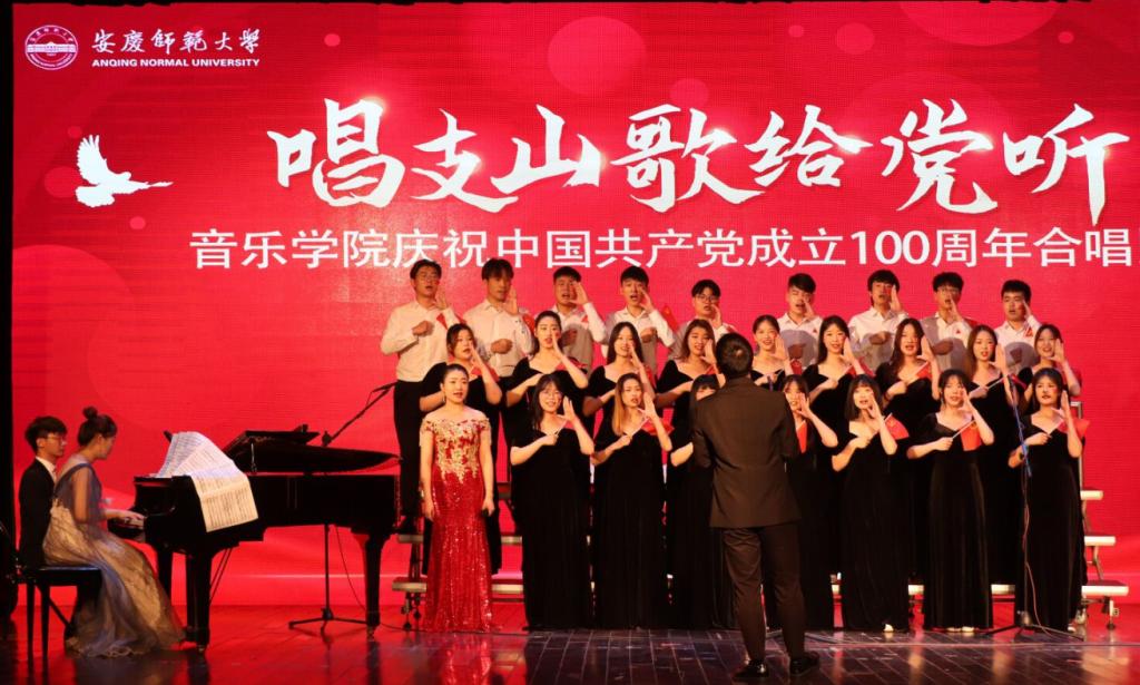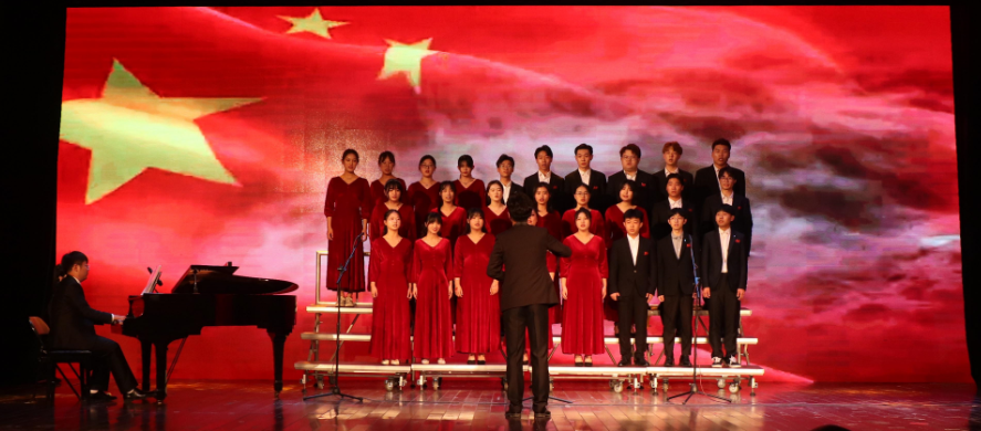 清脆悦耳的古筝、低沉铿锵的钢琴、和谐统一的声线……由音乐学2018级(3)班演唱的《龙的传人》以优美的音色和高昂的情绪将华夏儿女爱国热情和高尚的民族情结体现的淋漓尽致。“为了把歌曲演绎好,庆祝建党百年华诞,展现新时代青年的责任担当,我们特意选择了这首歌,想把作为‘龙的传人’的自豪和骄傲传递给观众。”音乐学专业2018级(3)班的赵稳柱表示,为了提高演出效果,他们选择《龙的传人》改编版,每周都会排练几次,将四个声部交织在一起,提高音乐立体感,最终顺利完成演出。