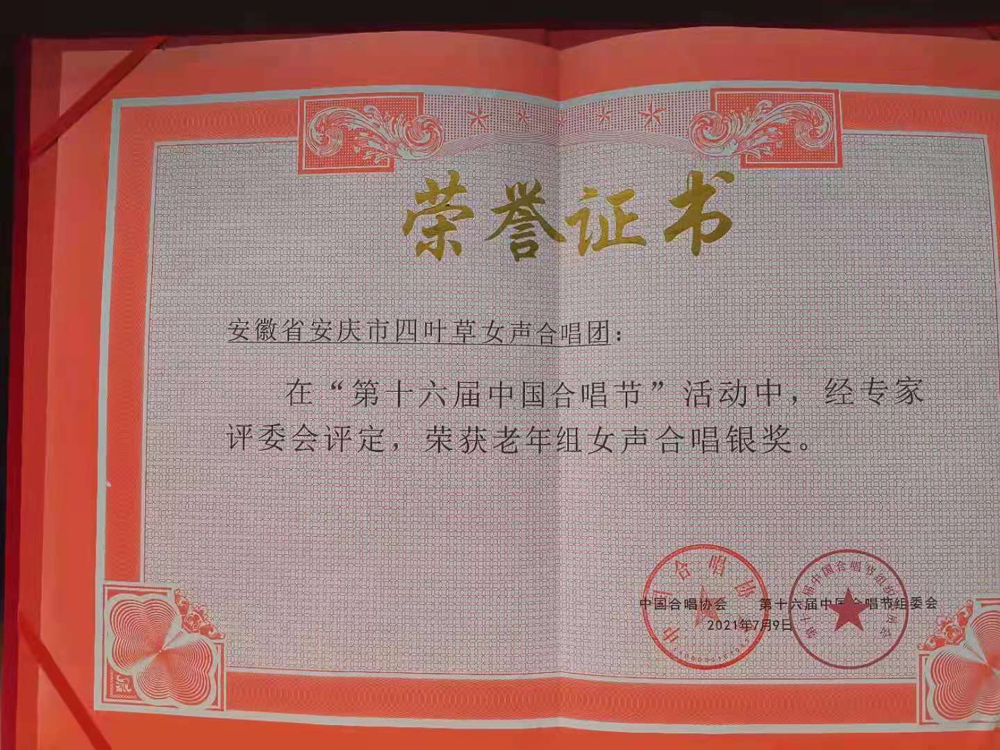 2021年7月5日至9日,以“颂歌献给党 启航新征程”为主题的第16届中国合唱节在湖北武汉市拉开序幕,来自全国20余省、市的82支合唱团,近5000人围绕比赛主题,高歌党的百年辉煌。William威廉英国官网陈燕翔老师担任指导老师和合唱指挥的“安庆四叶草女声合唱团”在此次比赛中荣获老年组女声合唱银奖第一名。