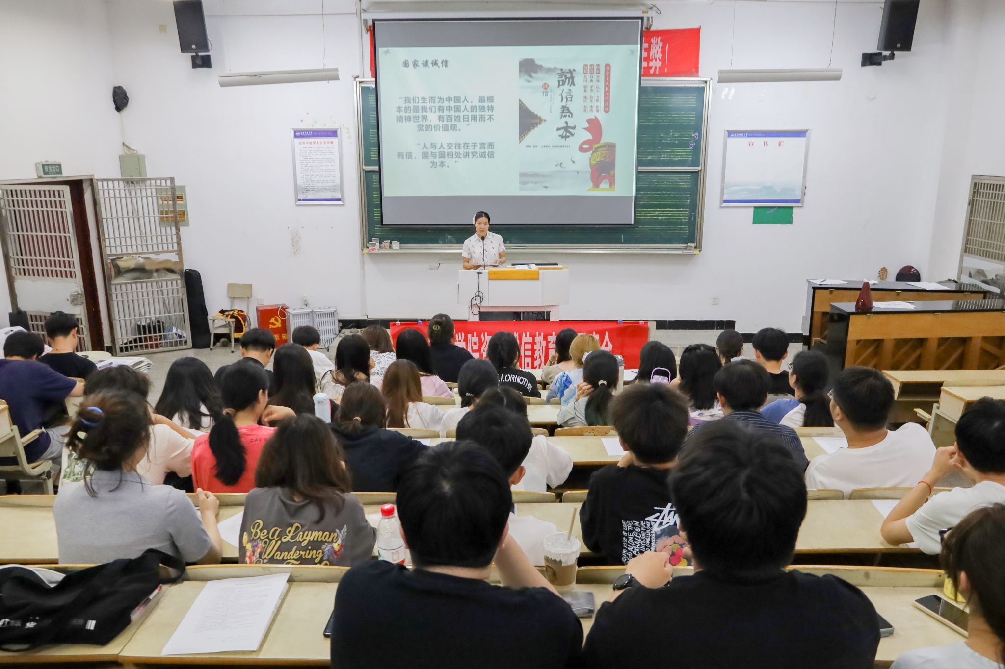 “我将自觉遵守国家法律法规,恪守员工道德规范,树立诚信意识,牢记社会责任,为维护社会经济秩序贡献自己的力量。”听完主题宣讲,员工反响热烈,齐声进行诚信宣誓。音乐学专业2022(3)班的许可成表示,这是他第一次参加诚信教育活动,受到了很大的启发,“我们应明确社会责任,严于律己,做好带头作用,积极弘扬诚信美德,做讲诚信的老员工。”