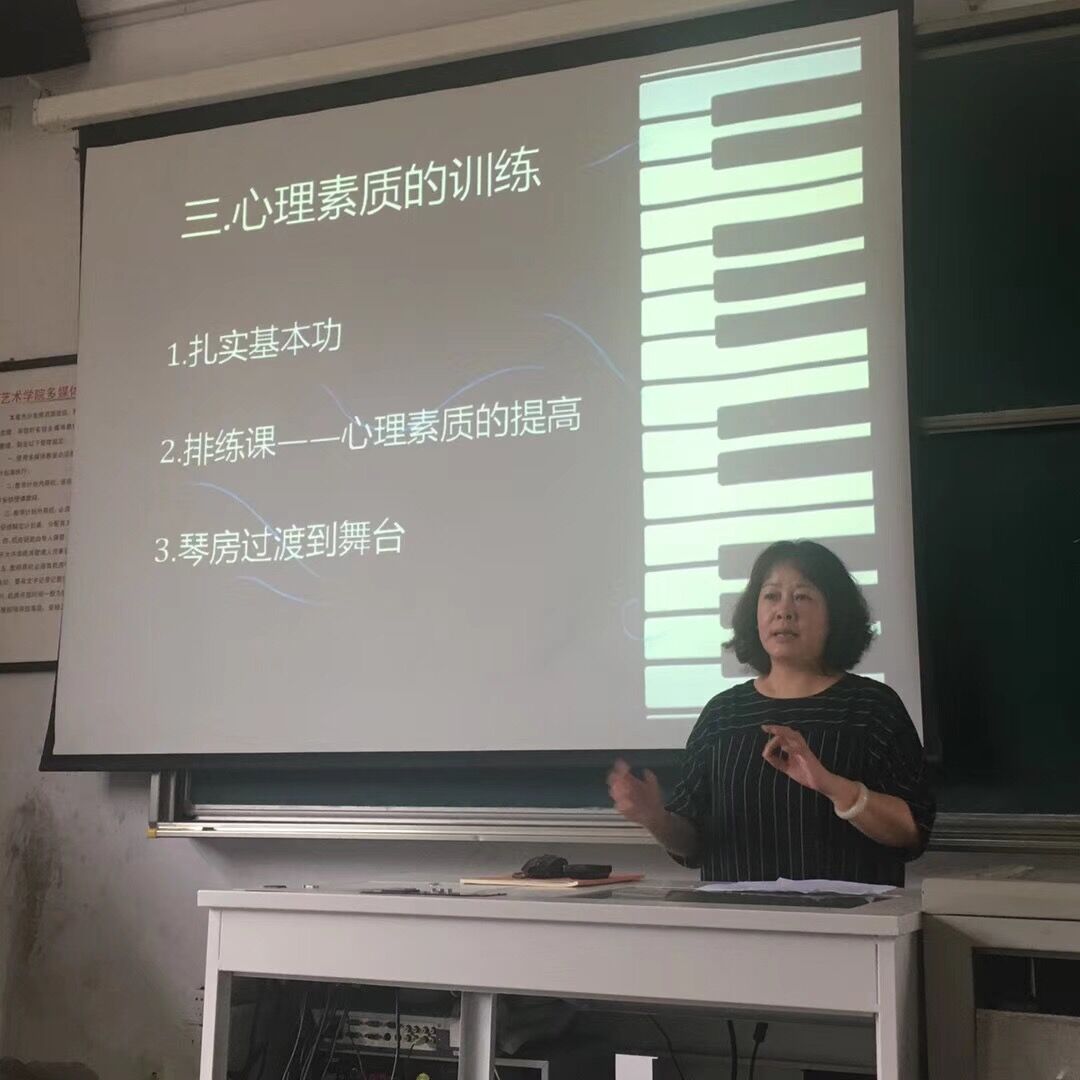 5⽉30⽇下午3:00音乐黄梅剧艺术公司刘蕊副教授在艺术楼106教室作了一场题为“声乐演唱——从琴房走向舞台”的学术讲座。
