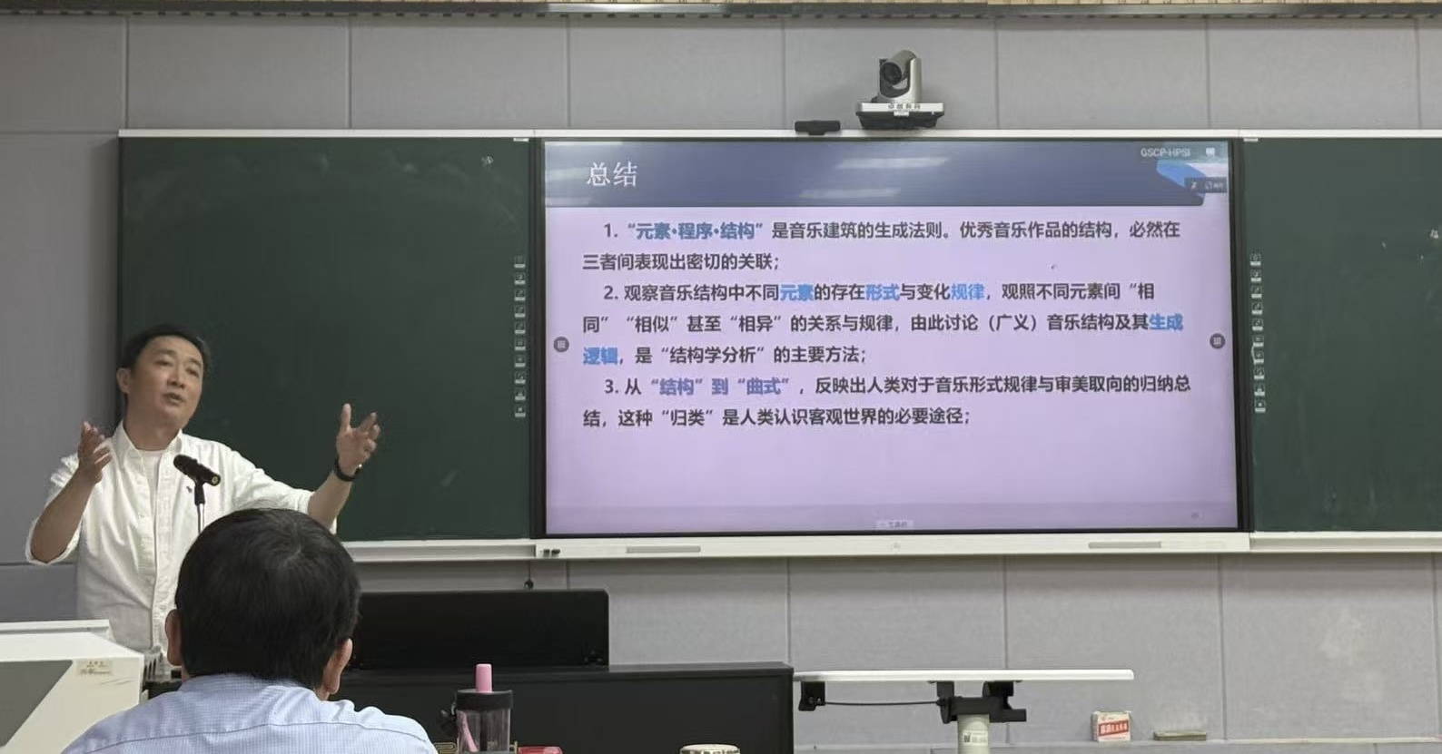 符方泽副教授的讲座题目为《音乐结构的“生成”及其逻辑——兼论“结构学分析”对“曲式分析”的拓深意义》。他从理论层面深入剖析了音乐结构的生成机制及其内在逻辑,并探讨了“结构学分析”方法对传统“曲式分析”的深化与拓展。讲座内容兼具学术性与实践性,为音乐理论研究提供了新的视角与方法。