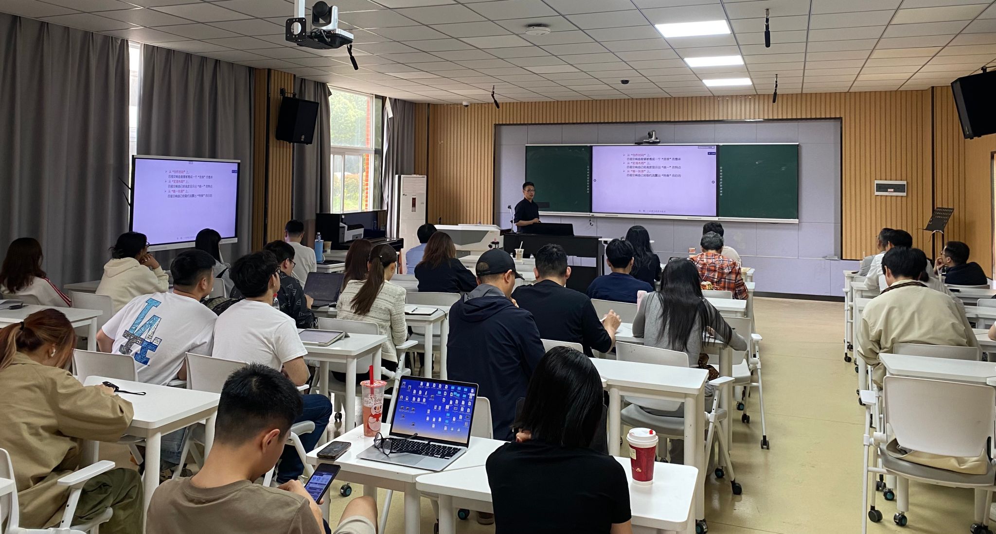 4月24日下午3:30,武汉William威廉英国官网教授张璟、副教授符方泽应邀在公司艺术楼智慧教室203举行专题学术讲座,吸引了众多师生到场聆听,现场学术氛围浓厚。