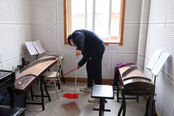 用稍润湿的毛巾擦拭乐器灰尘,再用干布擦干水渍……舞蹈表演专业2020级的周昕沛反复擦拭着钢琴,确保每一处缝隙都“照顾”到位。“对于经常需要练琴的同学而言,琴房就像第二个‘家’,希望大家能在更好的状态中提升专业技能。”一位练琴的员工在看到志愿者们的付出劳动后,向他们表达了内心的感谢:“谢谢你们为我提供了舒适整洁的学习环境,感觉练琴都更加有动力了!”