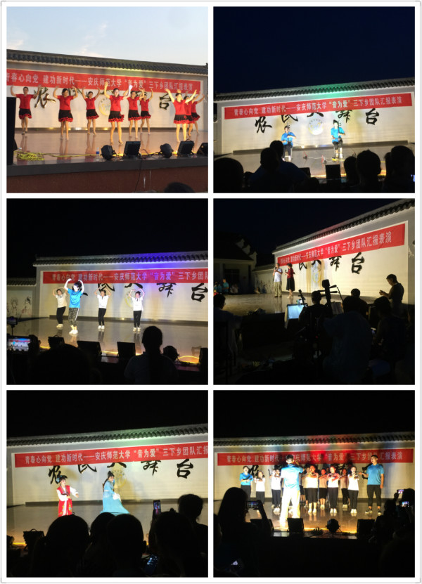 为了充分展示教学成果,实践队员在当地政府的支持下带领员工们在当地举办了一场隆重的汇报演出。本场文艺汇演由孩子和实践队员共同参与,并邀请社区居民现场观看。“鸿雁天空上,队队排成行……”实践队员张少举的一首《鸿雁》让淡淡的乡愁如鸿雁一般游荡在天空上;紧接着,孩子们开始倾情演奏他们精心准备的竖笛曲目《茉莉花》,整齐划一的节奏赢得了台下观众的热烈掌声;二胡、陶笛、舞蹈、朗诵,众多节目的演出让观众们赞不绝口,台下气氛热烈;最后,整场汇演在全体师生的合唱《让世界充满爱》中落下帷幕。
