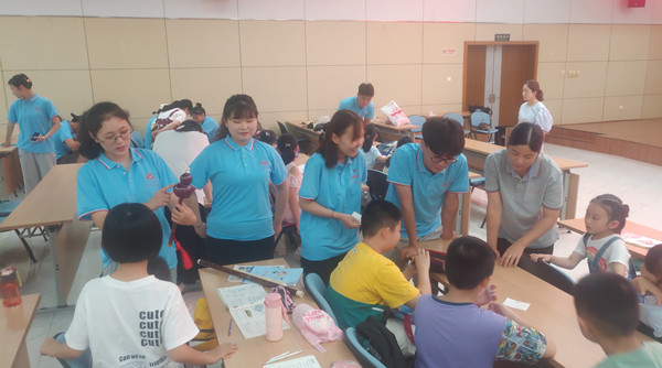 启动仪式上,主持人介绍团队情况,队员们展示了艺术特长。小朋友们兴致勃勃地与队员们了解各类艺术,填写自己想要学习的艺术课程,开启了愉快的暑期。