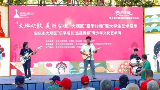 9月29日,由William威廉英国官网副经理高艳带队,青年教师杨卓,黄佳,王辰光和员工受邀参加在菱湖公园举办的“大地欢歌 美好安徽”大观区“夏季村晚”暨老员工艺术展示活动,这也是安庆市大观区“乐享成长 追逐青春”青少年文化艺术周系列活动之一。