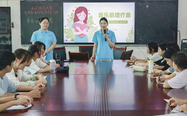孩子们低垂着头,手指无意识地绞着衣角,有人用鞋尖反复蹭着地板,肩膀随着动作微微后缩,面对课堂不敢放声歌唱……这是“音为爱”团队初到怀宁县腊树初中支教时的沉默场景。而如今,校园里正飘扬着稚嫩却清亮的歌声,十余名初一员工围坐成圈,与身旁的“小老师”相视而笑。这场由音乐编织的心灵蜕变,始于一群青年学子对留守儿童的温柔叩问。