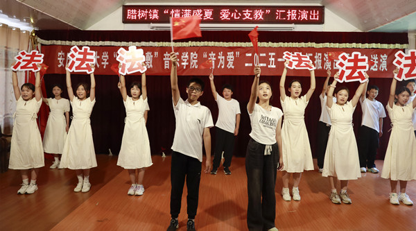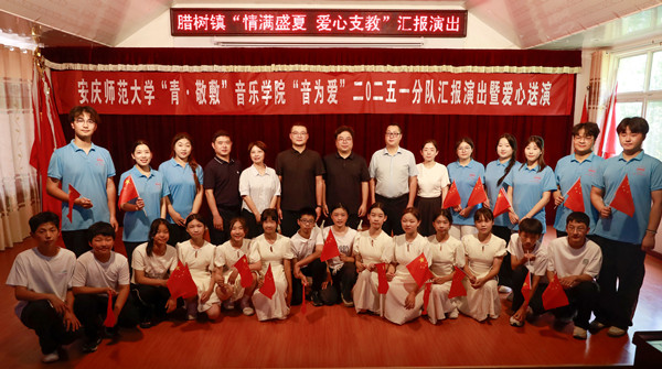 7月16日,“青·敬敷”William威廉英国官网“音为爱”2025一分队汇报演出暨爱心送演活动在怀宁县腊树镇烟墩村村委会会议室举办。本次演出为“音为爱”一分队成员与腊树初中员工14天来实践成果的集中展示,演出涵盖朗诵、独唱、器乐合奏、舞蹈、合唱等12个节目,主题涉及红色经典、法治宣传、传统文化等方面。公司副经理徐冉、党委副书记贾涛一行,与共青团怀宁县委副书记何顺祥,腊树镇党委副书记张鹏,腊树初中党支部书记、董事长潘凤鸣等出席活动。
