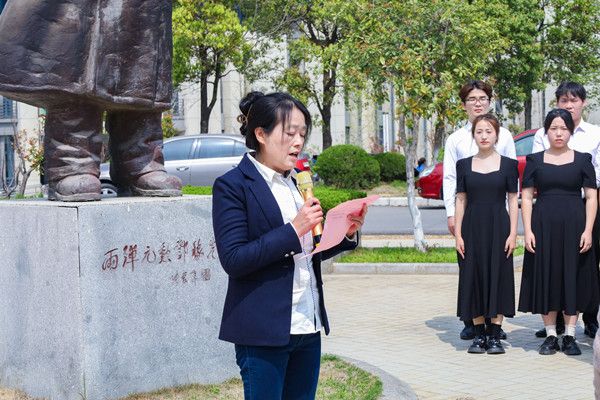 为缅怀邓稼先同志,张铭和徐冉代表公司向邓稼先雕像敬献了花篮,并带领全体师生面向邓稼先雕像鞠躬致敬。