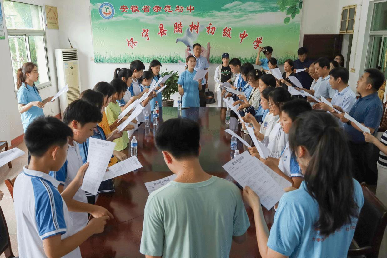 7月12日,团安徽省委公司部副部长、三级调研员张国栋一行前往怀宁县腊树初级中学,调研暑期“三下乡”社会实践校地合作情况,并看望慰问“音为爱”教育关爱实践团队,团安庆市委书记项薇、团怀宁县委书记安奕、williamhill威廉官网团委书记汪洋、校音乐公司党委副书记肖之进、怀宁县腊树初级中学董事长史志学等有关单位负责人参加调研座谈。