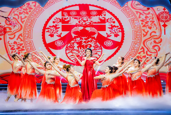 多样的民族乐器、红手绢、古典舞服……伴着《金蛇狂舞》的背景音乐,演员们手持花扇和灯笼欢喜入场,东北秧歌的手绢花随着鼓点转动,传统民俗元素的道具为表演锦上添花。参与开场舞《春开幸福门》的员工说:“从细微处的配饰到传统舞蹈表演形式,都展现了我们对优秀文化的传承,发扬了文化自信的精神风貌。”她坦言,彩排时,指导老师格外强调面部表情中情感的传达以及与观众产生的互动感。