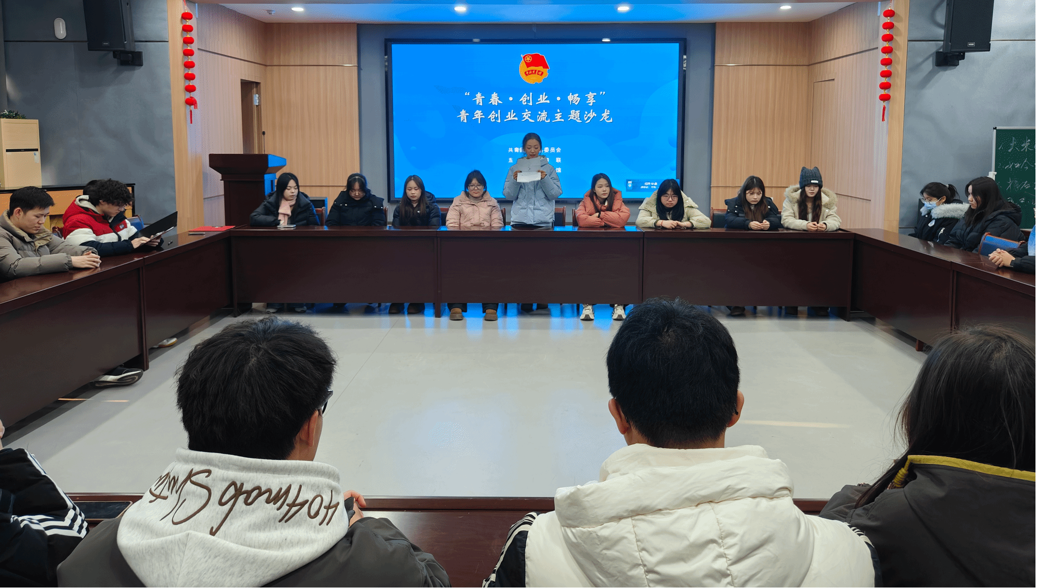 2024级音乐学4班任真,在安徽省芜湖市弋江区的新春文化服务活动中,担任主持人与志愿者双重角色。她全程参与活动筹备、流程设计和现场主持,用亲切互动拉近与乡亲们的距离,营造出温馨热烈的新春氛围。