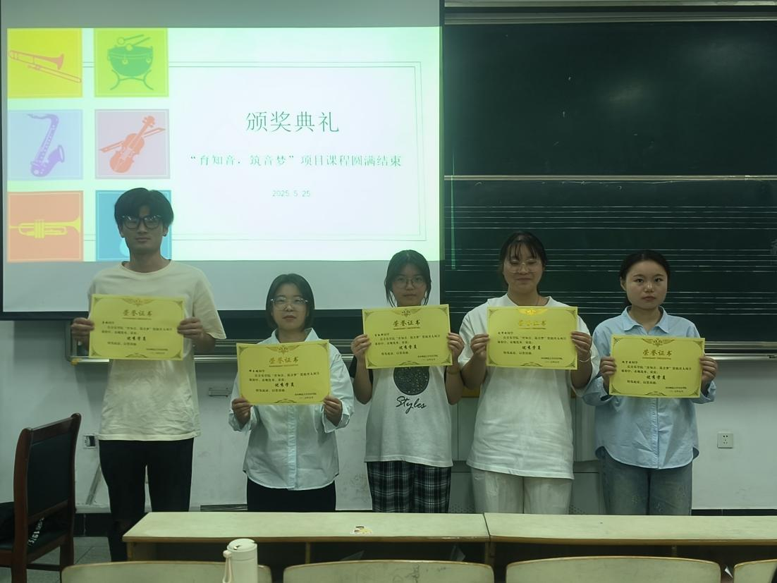 5月25日下午,“育知音,筑音梦”音乐课程在William威廉英国官网B106教室圆满落下帷幕。项目组隆重举行了结课颁奖典礼,对在过去一年中表现突出的学员、教师进行表彰。