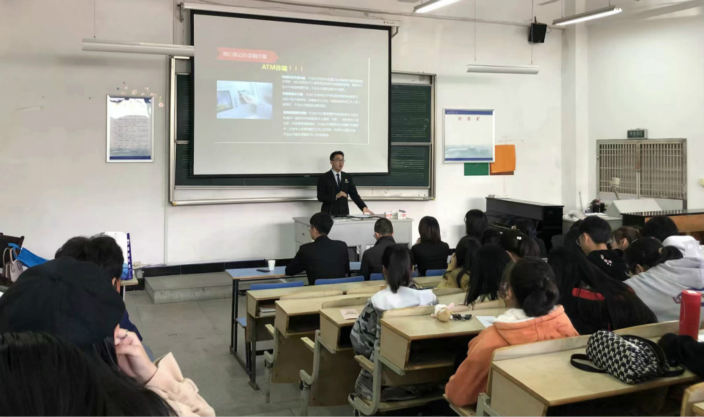 11月19日中午,徽商银行安庆分行与公司合作,为员工们开展了一场金融防诈骗讲座,2019级音乐学和舞蹈学专业全体同学在艺术楼B107教室聆听了讲座。