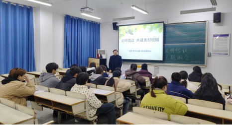 12月12日,公司音乐学2023级1班于艺术B105教室召开“文明倡议 共建美好校园”主题班会,班级全体同学、辅导员肖之进与班主任熊星子共同参会。