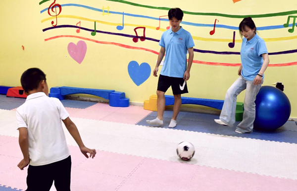 “看哪个小朋友先到终点!”在游戏运动室,老师对小朋友们进行运动技能培训。课程结束后,志愿者们向老师借来足球,在耐心的指导下,小Q学会了正确的足球发球方式,“他们与普通儿童相比在互动反应能力方面有所欠缺,需要我们给予更多的关爱和尊重。”队员徐慧东说到,通过相处他感受到了孩子们的热情与纯真,“希望有更多的志愿者加入到关爱队伍,为孩子们送来温暖和帮助。”