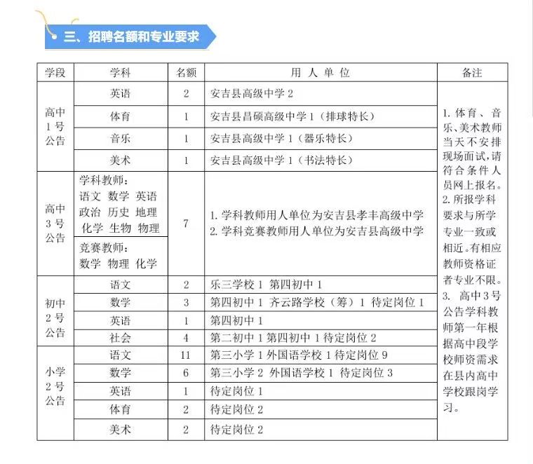 (二)初中、小学教师岗位(见2号公告)