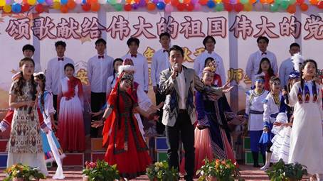音乐会在《天山放歌》的欢快旋律中拉开帷幕。公司支教队员与身着各个民族传统服饰的员工携手登台,载歌载舞,点燃全场,展现了各民族师生团结友爱、亲如一家的动人场景。