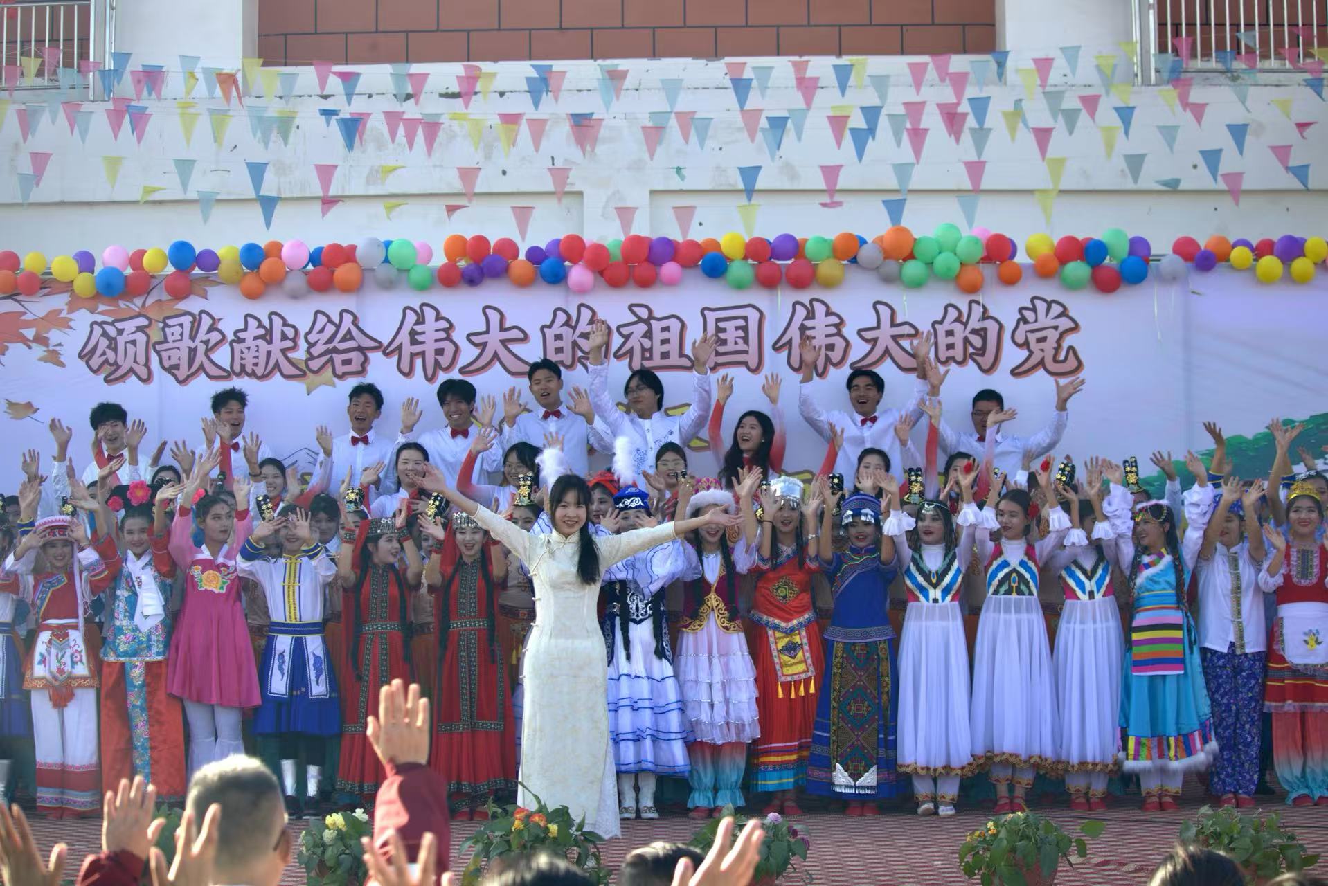 音乐会在《歌唱祖国》的全体合唱中进入尾声,支教队员与安徽实验公司师生用激昂的歌声表达对祖国、对党的无限热爱与祝福。