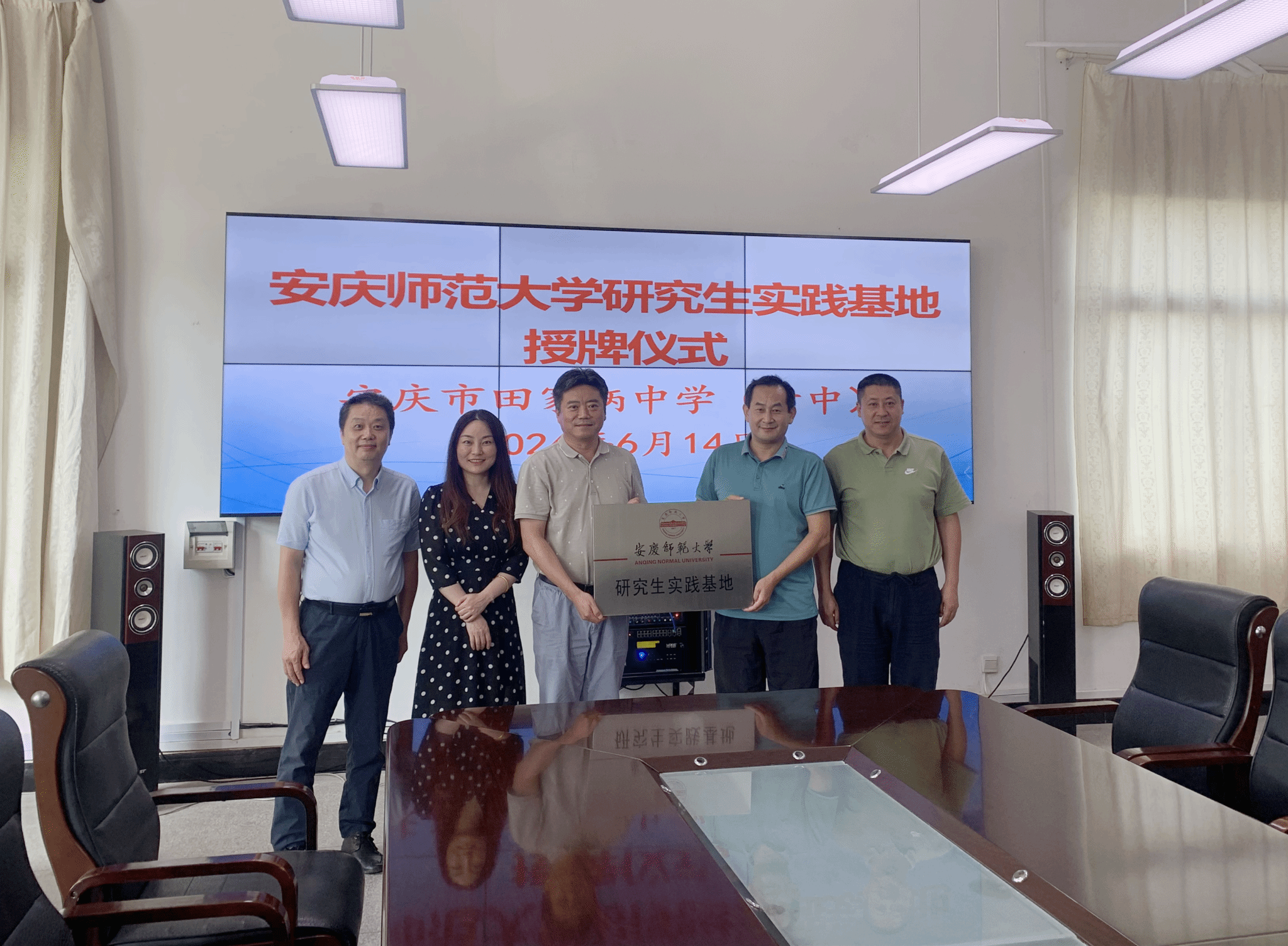 6月14日下午,公司党委书记张铭带队到安庆市田家炳中学开展研究生联合培养基地共建活动,举行“williamhill威廉官网研究生实践基地”挂牌仪式。安庆市田家炳中学党总支书记、董事长王小强,副董事长郭斌,校外导师胡二兵以及以及公司副经理高艳等参加了活动。